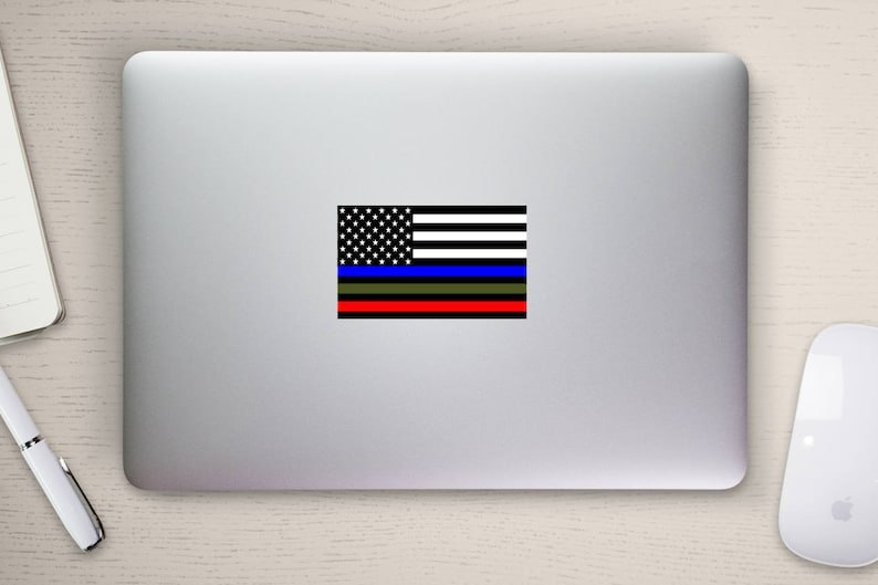 5 Pcs 3x5 Inch Police Military and Fire Thin Line USA Flag Decal American Flag Sticker Blue Green and Red Stripe for Cars Trucks for Honor and Support
