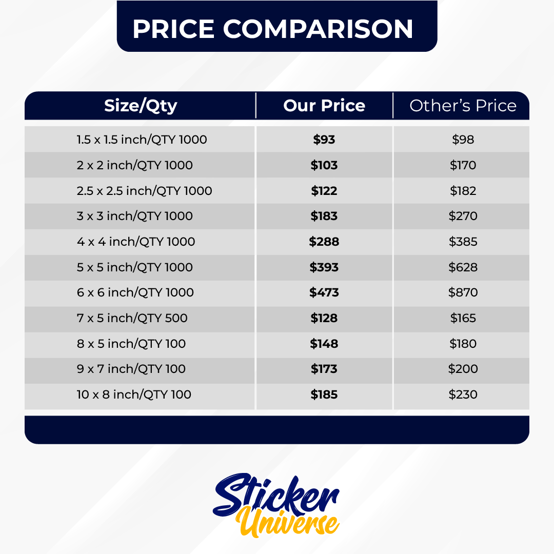- Minimum Order 100 Stickers, Bulk Order Price Breaks